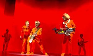 De wereldtournee waarmee Byrne zijn album promoot, borduurt voort op de voorganger American Utopia, acht jaar geleden alweer. Toen koos hij verrassend voor een onorthodox concept met een constant marcherende, dansende band die dankzij de draagbare instrumenten dynamisch over het podium kon manoeuvreren. Who Is The Sky? gooit die opzet in een nog hogere versnelling.