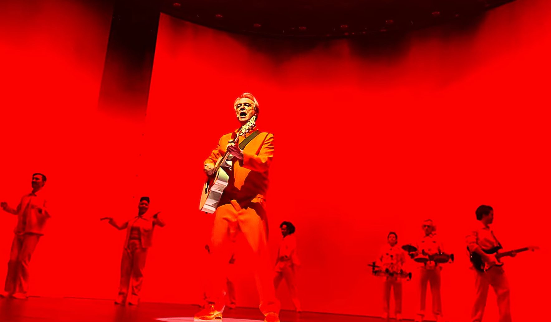 Het gezelschap dat deze avond in knal oranje pakken is gestoken, verbluft met de combinatie van live gespeelde muziek en streng ingestudeerde danspassen. Tel daar het magnifieke geluid bij op en de avond kan niet stuk. Zou je denken. Maar gaandeweg dringen zich toch wat bedenkingen op bij deze uitzonderlijke aanpak.